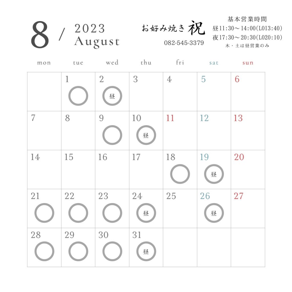 「昼」と明記のある日は昼(11:30〜14:00)のみの営業となります。