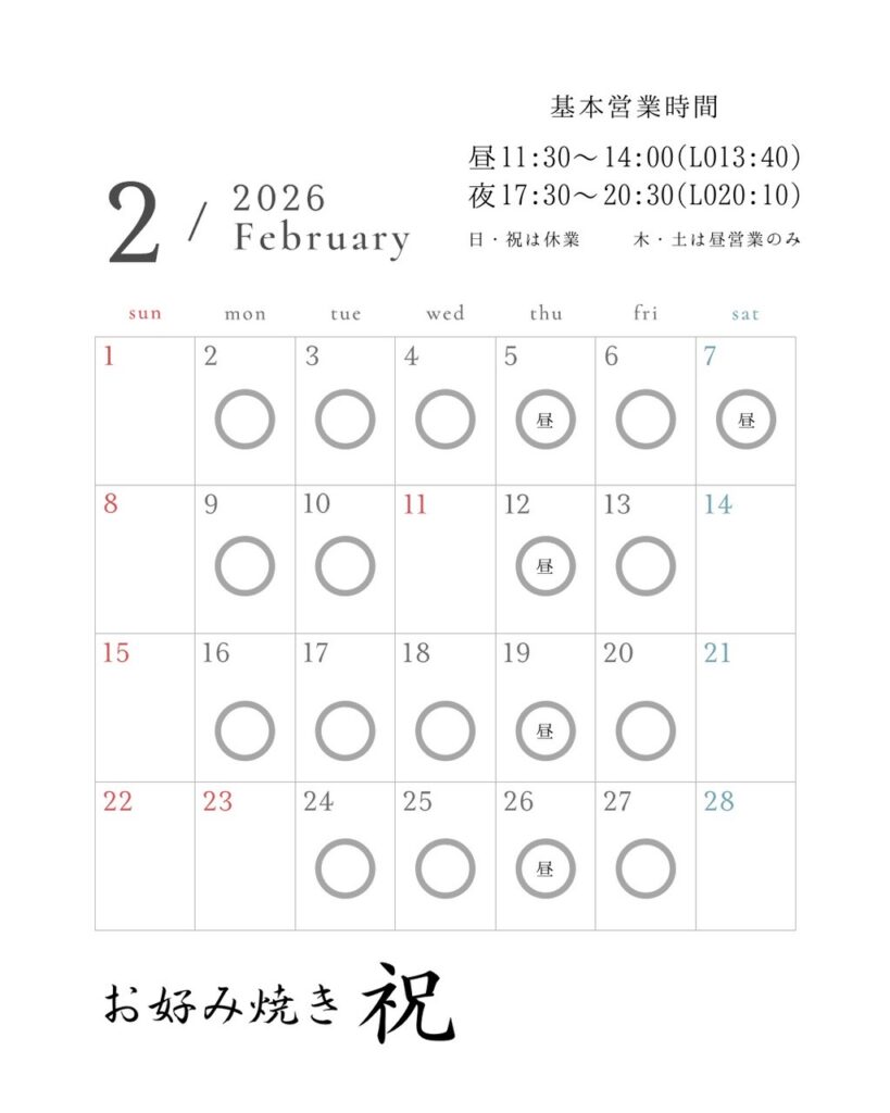 いつもお好み焼き祝をご利用いただきありがとうございます🌱